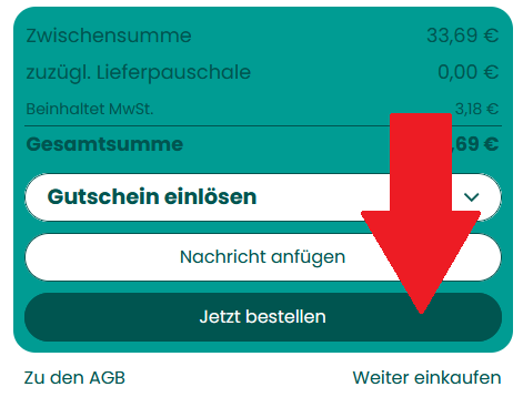 Wichtig: Vergesse nicht, deine Bestellung abzusenden. Dies gilt sowohl für neue Bestellungen, als auch für geänderte Bestellungen. Dazu gehst du im Warenkorb ganz auf „Jetzt bestellen“ bzw. auf „Änderungen jetzt absenden“.