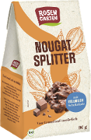 Vollmilchschokolade* 47% (Rohrohrzucker*, Kakaobutter*, VOLLMILCHPULVER*, Kakaomasse*), Waffelstückchen* 34% (Kartoffelstärke*, Kichererbsenmehl*, Maismehl*, Reismehl*, Kokosfett*, Emulgator: Sonnenblumenlecithin*, Meersalz, Verdickungsmittel: Guarkernmehl*, Backtriebmittel: Natriumhydrogencarbonat), Nougatcreme* 19% (Rohrohrzucker*, HASELNUSSKERNE* 7,5%, Kakaobutter*, Kakaomasse*)Kakao: 40% mindestens in der Vollmilchschokolade| Energie | Fett | gesättigte Fettsäuren | Kohlenhydrate | Zucker | Ballaststoffe | Eiweiss | Salz |