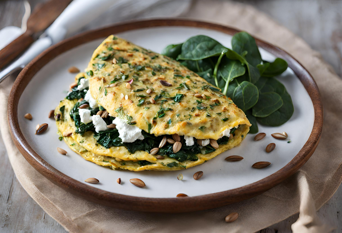 Die Sonnenblumenkerne in einer Pfanne, ohne Fett, hellbraun rösten und zur Seite stellen. Spinatblätter und den Ziegenkäse fein schneiden, auch zur Seite stellen. Die Kräuter klein hacken. Eier schaumig aufschlagen und anschließend mit der Sahne verquirlen. Die Kräuter mit der Eimasse verrühren, gut salzen und pfeffern. Öl in zwei Pfannen erhitzen. Die Kräuter-Eimischung, je zur Hälfte verteilt, in die Pfannen geben. Etwa 3 Minuten von jeder Seite goldgelb braten. Die Omelette auf jeweils einen Teller gleiten lassen, auf der einen Hälfte den Spinat mit dem Ziegenkäse verteilen und den Sonnenblumenkernen verteilen, die andere Hälfte lose darüber klappen. Das ganze sofort und noch warm genießen.