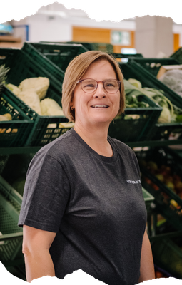 An der Packstation steckt Kerstin alle in die Tasche. Fast niemand geht so gekonnt und beständig mit Obst & Gemüse um. Und dauert es mal ein bisschen länger, weil der Salat nicht so richtig in die Kiste passt, Kerstin schafft das!