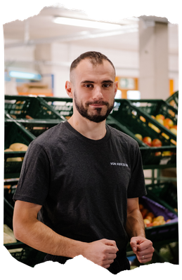 Bereits früh am Morgen steht Maxim bereit, um die grünen Kisten in den Transporter zu laden. Als Fahrer gewährleistet er, dass die frische Ware sicher und pünktlich bei Ihnen ankommt. Darüber hinaus ist Maxim auch immer für spontane Lieferfahrten einsatzbereit.